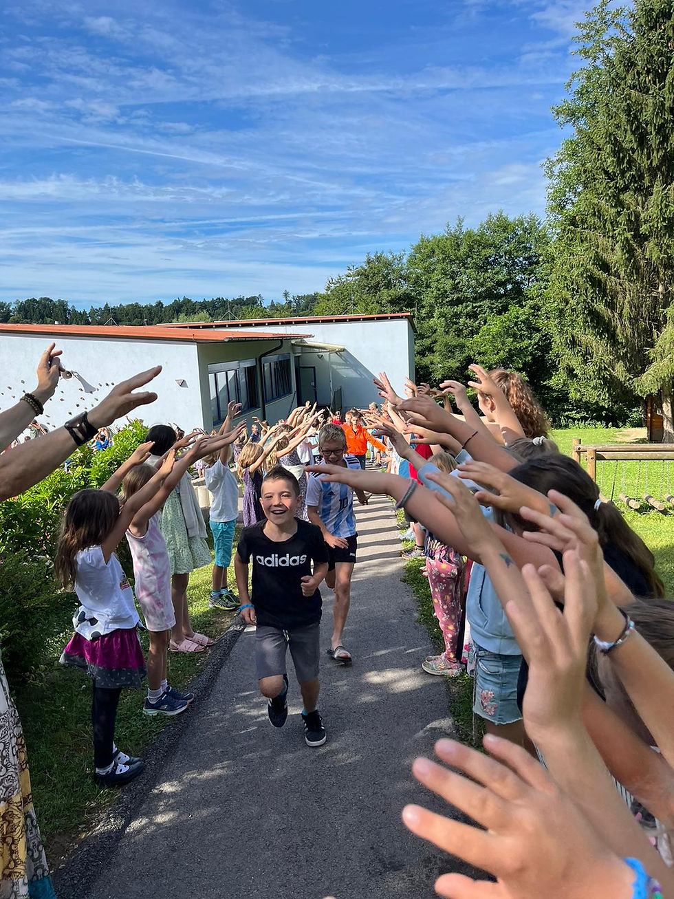 Am letzten Schultag wurden die beiden vierten Klassen feierlich verabschiedet. Vier Jahre lang durften wir sie begleiten, ihnen beim Wachsen zusehen und sie auf ihrem Lernweg unterstützen. Mit Jubeln und Klatschen wurden sie von ihren Mitschülerinnen und Mitschülern, den Lehrkräften und dem gesamten Schulpersonal in die nächste Phase ihres Lebens verabschiedet.