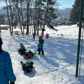 Ob beim rasanten Bobfahren am Schulhang, beim Bauen von fantasievollen Schneemännern oder bei einer lustigen Schneeballschlacht – das Lachen der Kinder hallt über das ganze Gelände.