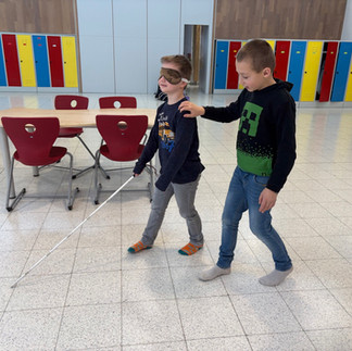 Die Kinder durften selbst erleben, wie sich Einschränkungen im Alltag anfühlen. Sie schlüpften in verschiedene Rollen, bewegten sich mit verbundenen Augen, nutzten Hilfsmittel und malten Bilder mit dem Mund oder mit dem Fuß. Dabei wurde ihnen bewusst, dass viele Tätigkeiten mehr Zeit, Geduld und Übung erfordern. Durch das eigene Ausprobieren entwickelten die Kinder mehr Rücksicht, Hilfsbereitschaft und Respekt.